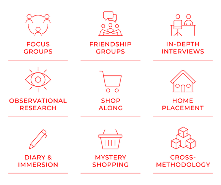 We use qualitative techniques to get close to customers so that we can understand their thoughts, feelings, and decisions.